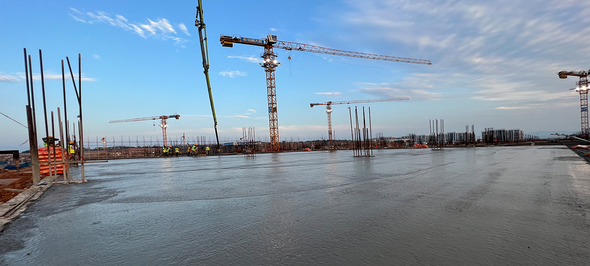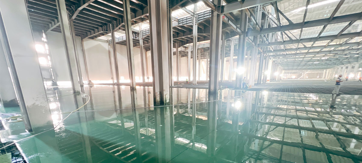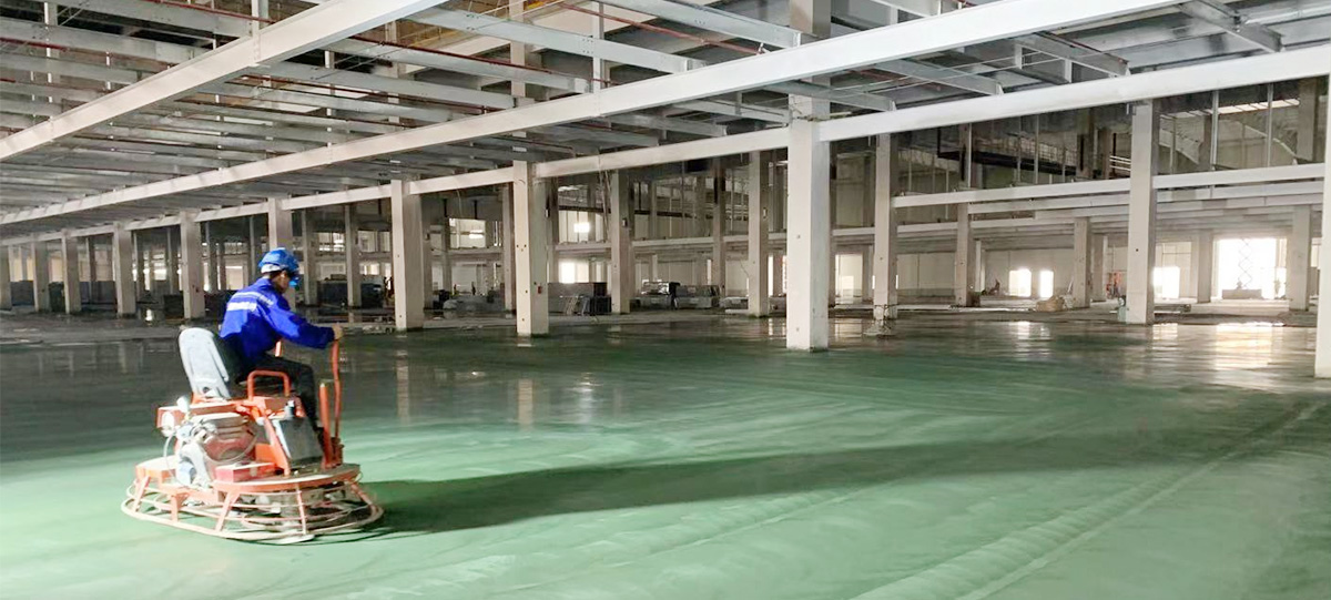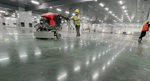 該項目為(wèi)一次成型本色金剛砂地面,在主體(tǐ)框架未施工的情況下進行(xíng)的,在主體(tǐ)施工前就介入施工,和(hé)主體(tǐ)工程同時(shí)進行(xíng)的樓面現澆地坪施工項目。